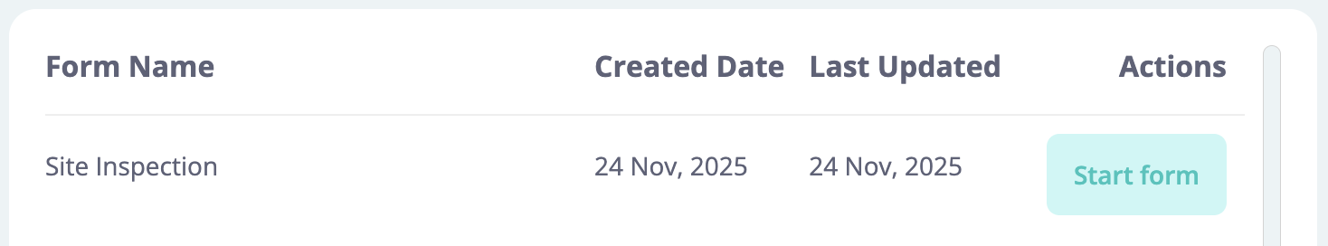 To start a new form, go to the Templates tab, find the form you want to complete and click on Start form.