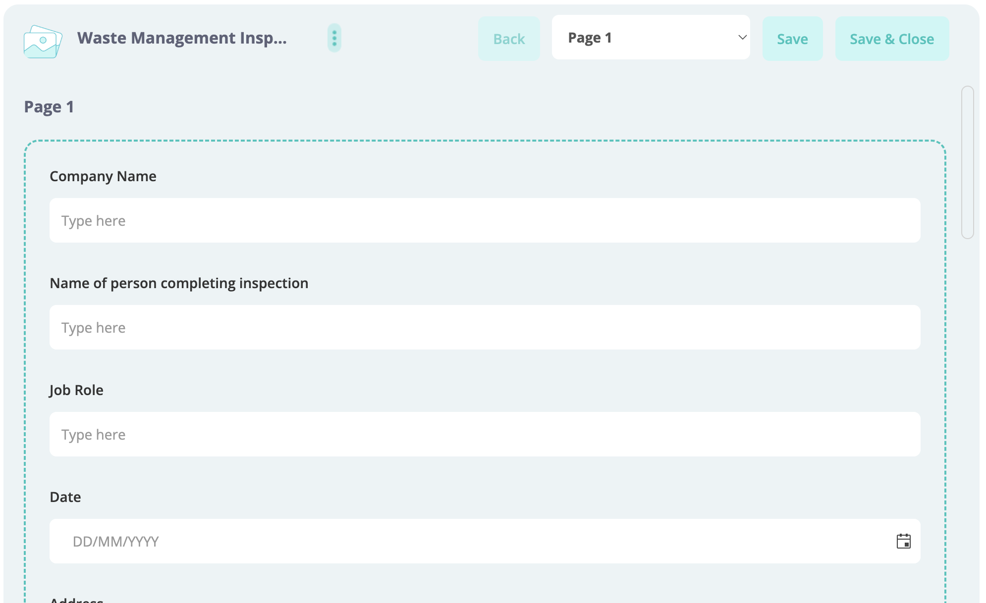 Once you've opened the your form, you'll be able to fill in all the fields. The buttons at the top allow you to navigate through the form, rename it and save the details.