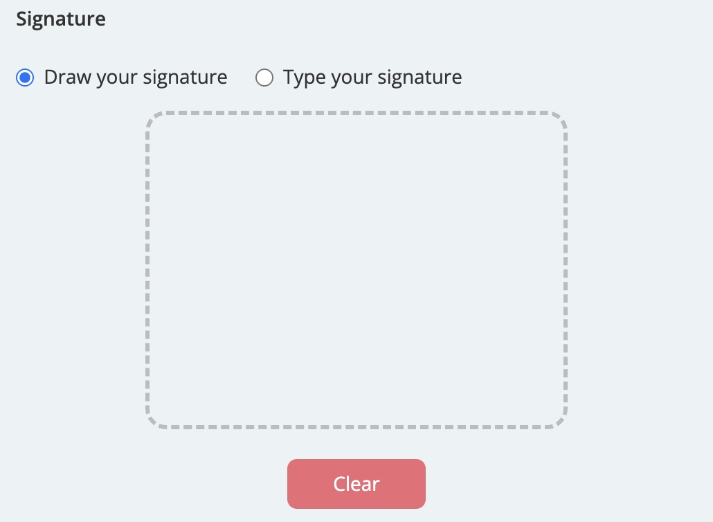 You'll also find a signature box at the bottom of a form allowing you to either draw or type out your signature.